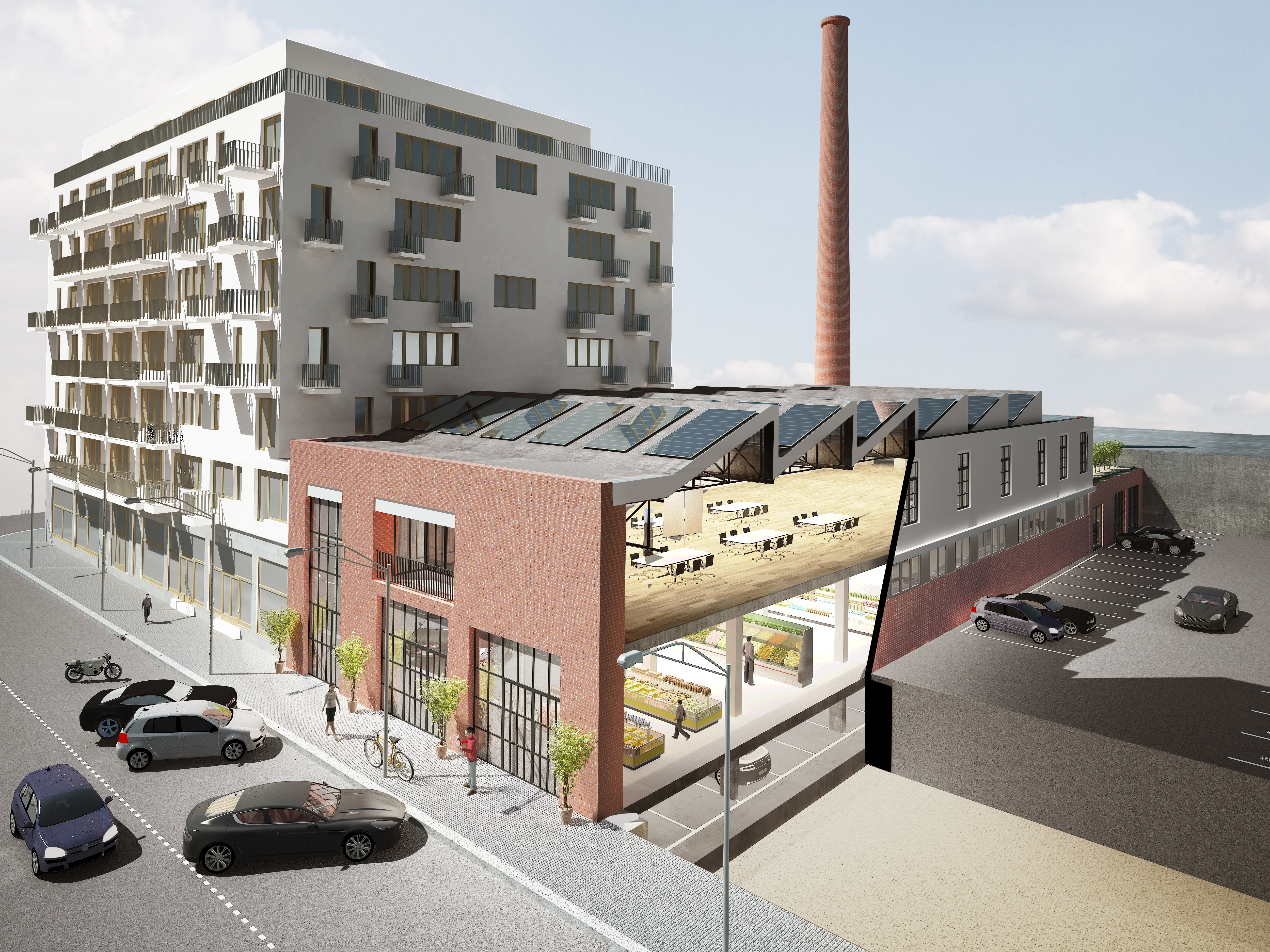 Práce na rekonstrukci průmyslové budovy C pokračují. Předpokládný termín dokončení je jaro 2016. Budova C nabídne 1150 m2 obchodních ploch v přízemí a 700 m2 kancelářské plochy ve 2.NP.